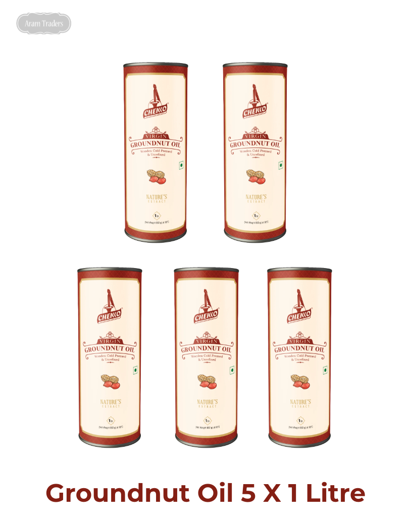 Chekko Virgin Cold pressed Groundnut(Peanut) Oil 1L - 5 Count: